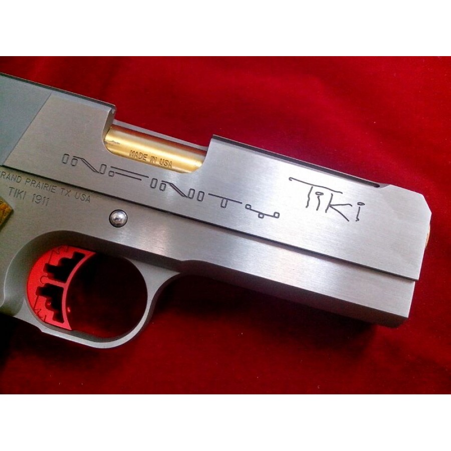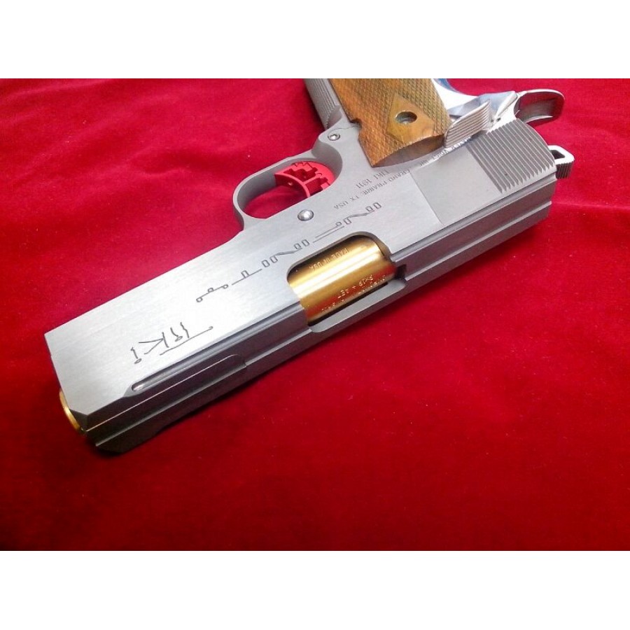 INFINITY TIKI Full Gun for Tokyo Marui 1911 system design. The CNC-machined all kind of part are made of stainless steel . Limited edition full gun come with free single magazine wood presentation box .